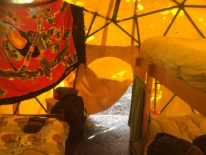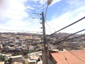 Wir wollten in den Club rein, doch der Türsteher meinte wir sollen kurz 15 min weg und nochmal kommen. Wir verstehen nicht ganz und warteten einfach vor der Türe und quatschten mit den Einheimischen. Nach 5 Minuten passieren ca. 5 Pick Ups mit Polizisten auf der Ladefläche. Sie sind maskiert und schauen streng. Jetzt verstehe ich. Sobald die Polizisten weg sind, kommt der Kassier aus der Bar und wechselt die Strassenseite. Wir folgen ihm die Treppen runter. Es stinkt, sieht übel aus und ist alles andere als gemütlich. Doch unten angekommen kann man durch eine kleine Tür in einen grossen Raum und ist in einer Disco. Wir tanzten, lachten und hatten Spass für ca. 30 min. Dann geht die Musik aus und es heisst „psst“ von allen Seiten. Wir sind ruhig, doch irgendwie alle anderen nicht. Wieso ist man denn nicht ruhig? Selberschuld. Schon nach kurzer Zeit steht die Polizei in allen Räumen und alle mussten raus. Sie sagten nichts, sie standen nur mit bösen Blicken, schwerbewaffnet in allen Ecken. Wir liefen auf die Strasse und fragten uns da wie weiter. Da luden uns die Bolivianer, mit welchen wir schon den ganzen Abend immer wieder sprechen ein zu sich nach Hause. Eigentlich würde ich das nicht machen, doch da wir 5, und so in der Überzahl sind, einigen wir uns auf annehmen. Wir und etwa duzend Strassenhunde liefen eine Weile und kamen dann durch einen Vorhof in einen kleinen Raum. Bett, Schrank, Herd. Das ist sein Zuhause. Unvorstellbar, doch es reicht. Alex (auch ein Bolivianischer Name) macht seine kleine Dicolampe an und connected sein Handy mit einer kleinen Boxe. Qualität ist schlecht und Platz ist rar doch wir setzten unsere Party fort. Tanzen, Singen und unterhalten uns. Ich bin der Dolmetscher von 5 Personen und ziemlich stolz, wie viel ich verstehe und diskutieren kann. Erst um 5:00 Uhr machten wir uns auf den Weg nach Hause.