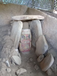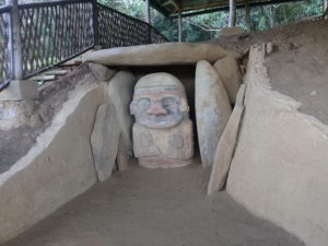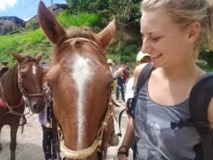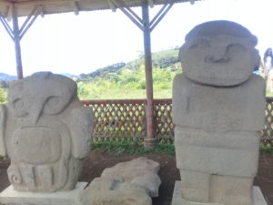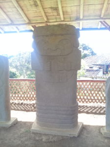Um 9am gehts los und wir steigen aufs Pferd. Anfangs hielt ich die Zügel noch völlig verkrampf, doch dann wurde ich lockerer und es fing an Spass zu machen. Wir liefen durch schöne Landschaften und galopierten durch Sumpf und Feld. 4 Stopps machten wir um die Figuren, welche seit 3000 Jahren in San Agustin stehen anzuschauen. Unser Guide erklärte uns die Geschichte zu jeder Figur. Götter, Tiere, Shamanen etc. Er erzählte uns auch Dinge über die Traditionen dazumals. Das verrückteste war, dass man den Baby den Kopf geformt hat, wie man es heute noch in Asien mit den Füsse  sieht. Sie drückten den Kopf mit einer Vorrichtung zusammen. Lange Köpfe oder besonders runde zeigten so zu welcher Familie man gehört. Auch sahen wir die einzigen 2 Figuren, welche noch die original Farbe haben und der Guide zeigte uns aus welchen Pflanzen sie die Farben gewannen. Wusstet ihr, dass es einen Baum gibt, der bei blossem Hautkontakt starkes Fieber und Ausschlag auslöst? Auch den durften wir anfassen eeh sehen.