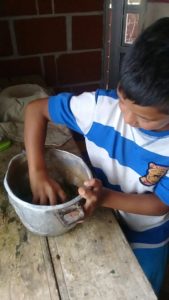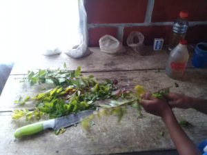 Los gehts. 5min Fahrt und schon sind wir da. Pedro und Chris steigen aus und ich warte auf ihr Zeichen. Dann kann auch ich aus dem Auto ins Wohnhaus. Von Carla, der Mutter des Hauses werde ich heimlich empfangen, dann gehts hoch ins Kinderzimmer. Kinderzimmer!! Die Zutaten stehen bereit. Coca Blätter, Farbe, Zement, Ammoniak, Benzin, Säure, Batterieflüssigkeit  und Backpulver. Einfach nur super eklig. Wer Kokain mag wird es hoffentlich spätestens nach dieser Tour widerlich finden. Wir schneiden die Cocablätter, fügen die Zutaten hinzu, pressen das ganze und trennen Flüssigkeit von Materialien. Einmal dran schnuppern, horrible. Der kleine Junge führt das ganze an. Er weiss genau Bescheid und seine Eltern sind mega stolz auf ihn.. Während Pedro kurz raus geht kommt Carla rein. Sie will mehr Farbe in unser Gemisch rein werfen. Der Junge möchte sie davon abhalten, trotzdem landet die Farbe in der Suppe. Schön wie man hier nach Rezept geht..
