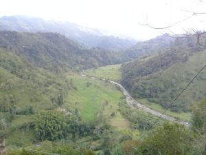 Früh am Morgen gehts los. Zu Fuss in die Stadt, dann mit dem Jeep in Richtung Tal. Im letzten Moment habe ich noch jemanden gefunden, der auch heute ins Tal geht. Der Jeep war bereits voll und wir mussten hinten auf der Ladefläche stehen für die 30min Fahrt. Ohren und Hände schmerzten als wir ankamen, dafür haben wir zwei neue Freunde gefunden. Zu viert liefen wir los. Um ins Tal einzutreten müssen wir 2000 Pesos bezahlen, was soviel wie nichts ist. Trotzdem rannten einige Einheimische hinter uns durch und versuchten diese 60 Rappen zu sparen. Wir schütteln den Kopf. Los gehts. Wir haben uns für die lange Wanderung entschieden. 6 Stunden soll sie dauern. Nach kurzer Strecke sind wir bereits 5. Ein Kolumbianer mit perfektem Englisch hat sich uns angeschlossen. Dies macht das ganze spannender. Wir fragten ihn aus und er erklärte uns alles über den Drogenkrieg. Wie es hier war, was er noch davon weiss, wie es weiter geht etc. Es ist cool mit einem Einheimischen so offen darüber sprechen zu können. Das ist nicht selbstverständlich. Wir liefen ca. 2 Stunden. Dann gingen wir den Umweg um noch den Teil mit den Kolibris zu sehen.  Wir zahlen einen kleinen Betrag und kriegen dafür ein Getränk. Da es unterdessen kalt geworden ich bestelle ich ein warmes Agua de Panela und schaue verwundert, als sie mir ein Stück Käse dazu gibt. Agua de Panela ist warmes Zuckerrohrwasser mit Käse. Viel zu süss aber gar nicht so schlecht..