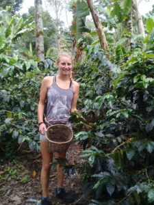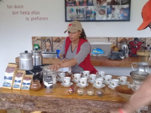 Am zweiten Tag stand ich früh auf und ging zum Frühstück. Ebenfalls ziemlich lecker. Die Atmosphere hier ist super. Jeder spricht mit jedem und alle sind sehr gut drauf. Nach dem Frühstück wollte ich zum Yoga. Ich wartete pünktlich vor 9 Uhr an der Rezeption, da kommt eine Freundin und meint es sei zwar um 9 aber im Schwesternhostel. Wie liefen los. 20min Richtung Dorf. Als wir ankamen meinten sie da: Findet nicht statt, aber um 11 Uhr im Serrana. Alles klar. Ich lief zurück und schlief nochmal ein. Um 11 Uhr stand ich auf. Yoga findet nicht statt, der Lehrer kann nicht, doch Kelsy kann es machen. Die New Yorkerin aus unserem Zimmer ist Zuhause ebenfalls Yogaleiterin und übernimmt die Stunde. Einverstanden. Wir nahmen uns eine Matte und legten sie in die Sonne auf die Wiese mit Ausblick über die wunderschöne Natur von Salento. Kelsy führte den Kurs perfekt. Ich bin mir ziemlich sicher, dass der eigentliche Lehrer dies nicht besser hingebracht hätte. Sie sagte uns nicht nur welche Bewegung gemacht werden soll, sondern auch was wir dabei denken und probieren zu fühlen sollen. Nach der Stunde fühlte ich mich super und bereit für den Tag. Wir blieben etwas sitzen und sprachen, dann machten wir uns zu zweit auf den Weg zu einer Kaffeetour.