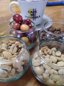 Nach dem Auschecken machte ich ein Powershopping. Neue Sonnenbrille (Blendet trotzdem sogar bei Nebel..), Socken und Hosen. Ich dachte dies bringe ich noch hinter mich bevor ich männliche Begleitung habe. Dann ging ich zurück und machte mit Jean die Free Walking Tour. Es war spannend. Ich lernte viel über die Geschichte von Kolumbien. Über die Kriege, meist ausgelöst von Drogen. Über Pablo Escobar und die Präsidenten. Es war sehr spannend. Noch spannender aber war das Früchtetesten. Wir konnten verschiedene Früchte, deren Existenz ich nicht kannte, probieren. Und dann zum Schluss auch noch zusehen, wie man perfekt kolumbianischen Kaffee zubereitet und auch diesen durften wir kosten. Nice to know: Kaffee soll nie mit kochendem Wasser gemacht werden. Alles über 70 Grad verbrennt den Kaffee!