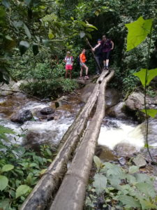 Im Masaya konnten wir noch einmal von Special Edition Carbonara und Pool profitieren, dann gingen wir los. Schon wieder klappt es perfekt mit dem Bus. Wir kommen an, steigen ein und fuhren direkt nach Palomino. Da wurden wir bereits von einigen Motorradfahrern erwartet. Sie wollten uns zum Hostel bringen. Wir sagten nein danke, wir brauchen ein Taxi. Sei lachten laut. „Hier gibt es keine Taxis, steigt auf“ Etwas kritisch schauten wir uns an. Auch ein Mann beim vorbeigehen versicherte uns, dass es keine Taxis gibt, also stiegen wir auf. Grosser Rucksack vorne auf den Lenker, wir je hinten drauf. 10min Fahrt und wir kamen bei der Finca Espandida an. Ein Hostel direkt am Meer. Und mit direkt meine ich „Nasse Füsse an der Bar – wenn grosse Welle“. Wir bekommen die Suite, was anderes konnten wir online gar nicht buchen. Unser Zimmer war im ersten Stock eines offenen Holzhauses. Wir hatten ein grosses Bett mit Mückennetz, ein schönes Bad und sogar einen eignen Balkon mit Hängematte. Die versprochene Klimaanlage war ein Ventilator.. Das einzige negative war, dass alles offen war und wir somit viele Insekten anzogen bei Nacht.