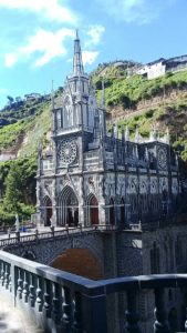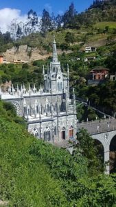 Am Terminal informiere ich mich über die Busse und entscheide mich nach Pasto zu fahren. So komme ich noch bei Tag an und kann ausschlafen bevor es 8 Stunden weiter geht. Die Jungs kaufen ihr Ticket nach Cali. Dann geben wir unser grosses Gepäck am Busbahnhof ab und nehmen ein Taxi zu der schönen Kirche Las Lajas. Idyllisch, wunderschön. Endlich Mal eine Kirche, welche sich wirklich lohnt anzuschauen! Wir verbrachten ca. 1 Stunde da und dann noch eine mit warten auf ein Taxi, welches uns für 3 Dollar mitnimmt. Wir müssen nämlich unsere Dollarmünzen loswerden und haben noch keine Kolumbianischen Pesos. Schliesslich mussten wir aufgeben. Vom Busbahnhof liefen wir los und suchten einen ATM, welcher keine Gebühren verrechnet. Auch ohne Erfolg. Weiter gibts Mittagessen und dann wollten wir uns noch eine Kolumbianische Simkarte kaufen. Wir standen 30min bei Moviestar an bis sie uns sagten, dass Touristen hier keine Simkarte kaufen können. Der nette Herr hinter uns bietet uns an über seinen Namen Simkarten zu kaufen. Wie lehnten dankend ab und kauften uns auf der Strasse eine. Nun habe ich für einen Monat Internet und eine Kolumbianische Nummer. Meine Nummer bis auf weiteres (+57)3162507877